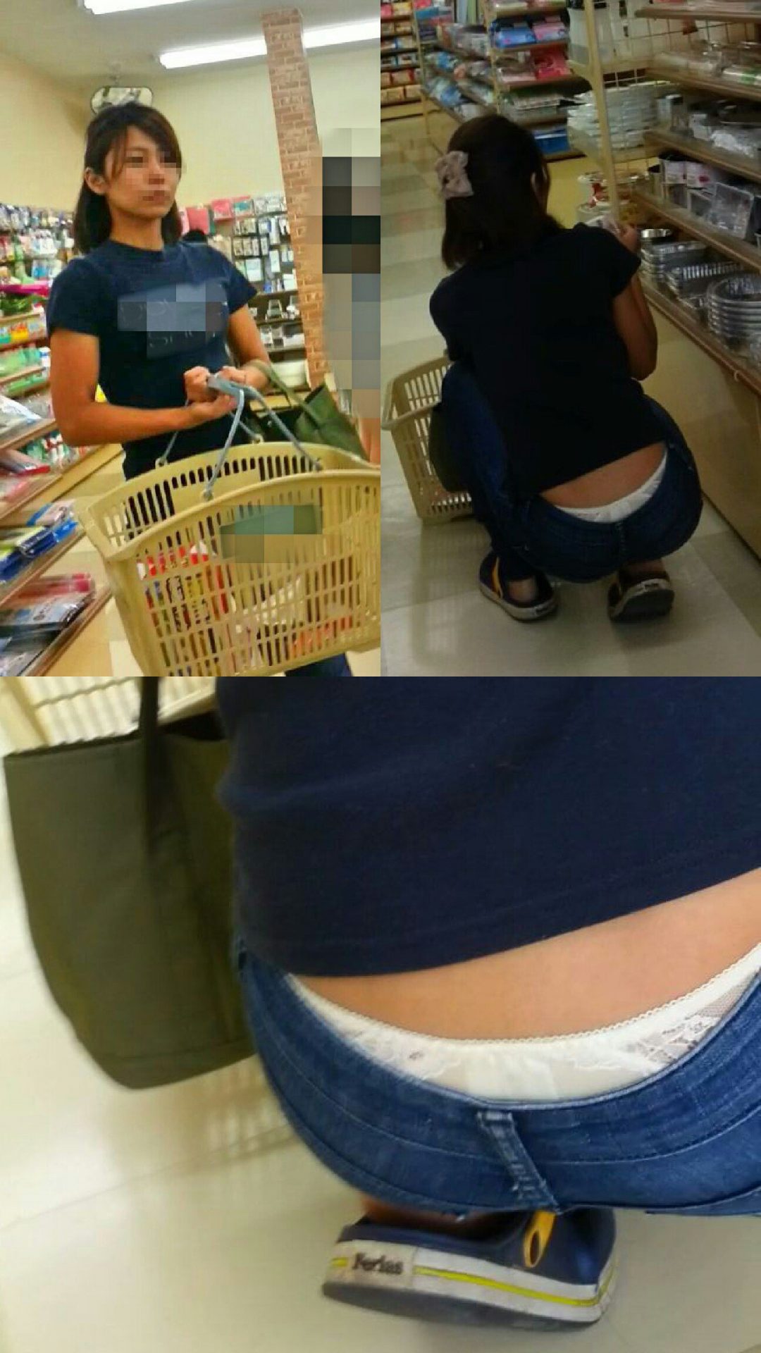 棚下に広がる絶景!店内でしゃがんだ隙に正面から狙った棚下パンチラ画像集( ^ω^ )