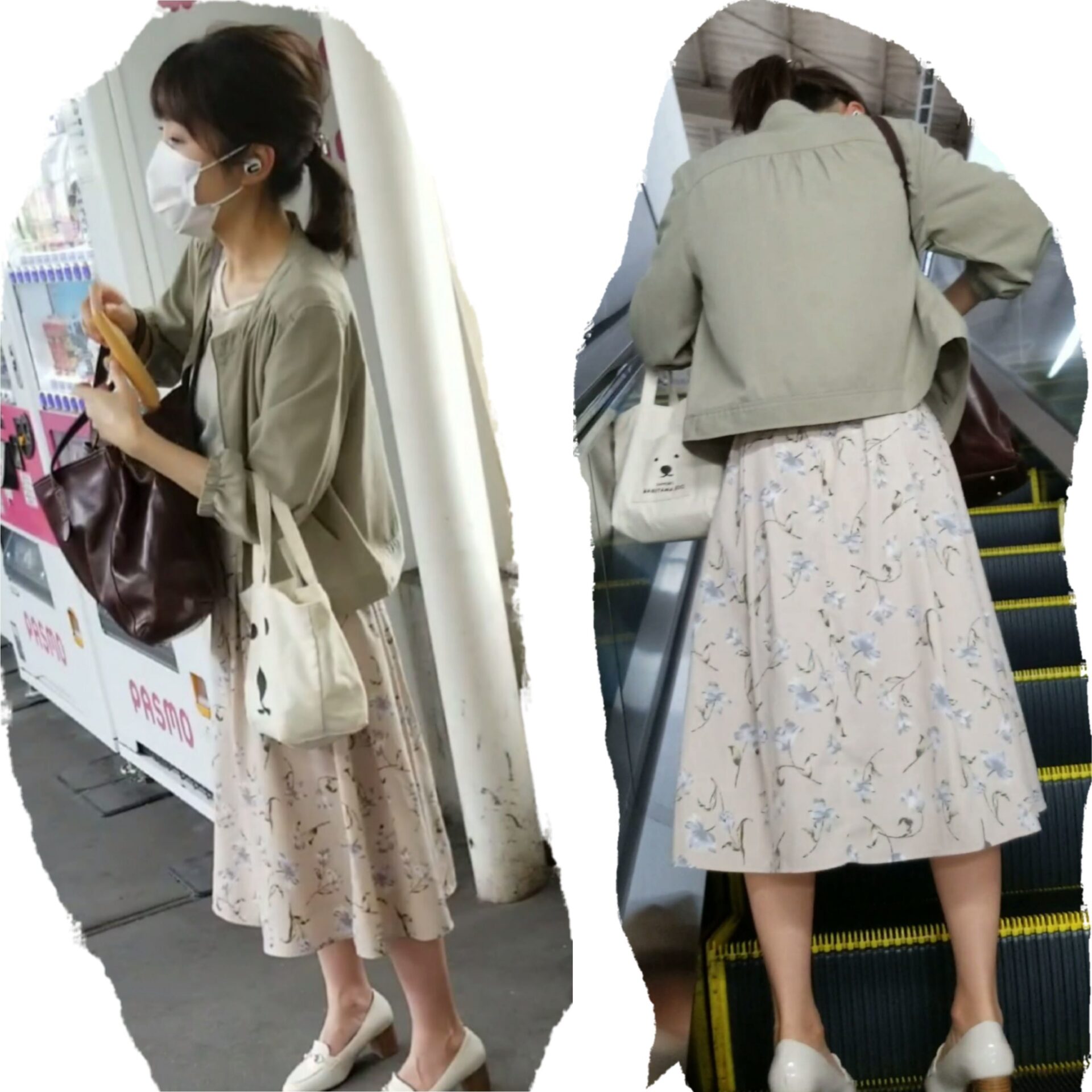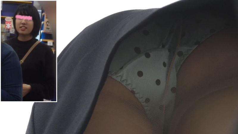 可愛いJKちゃんのドット柄染みつき白パンツを逆さ撮り!